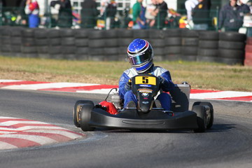 Pascal Holert entwickelt sich bereits nach seinem vierten Einsatz im IcA100 Kart zum Geheimtipp für die kommende Saison. Der Team Hemkemeyer Pilot stellte sich der namhaften Konkurrenz beim renommierten Graf Berghe von Trips Memorial und verkaufte sich trotz widrigster Verhältnisse sehr teuer. In den beiden Vorläufen riskierte der Formel A Neueinsteiger allerdings alles und verbesserte sich bis auf die 26. Startposition fürs Finale. „Leider habe ich mich im zweiten Vorlauf in der Trips Kurve gedreht. Sonst wäre noch ein besserer Startplatz drin gewesen.“ beschrieb der Intrepid Pilot einen kleinen Ausrutscher im zweiten Rennen. Im alles entscheidenden Finale war Pascal Holert mächtig auf dem Vormarsch und ließ einen Piloten nach dem anderen hinter sich. Leider gab es dann einen Defekt an der Membrane und die Aufholjagd endete auf der 13. Position.
