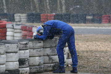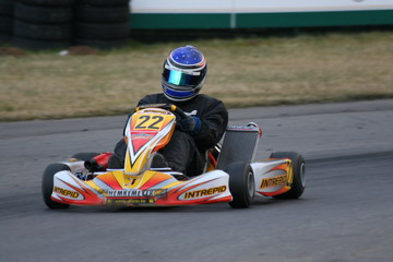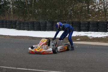 Nachdem der Vormittag zwar kalt aber trocken war, startete es just nach dem Start zum ersten Rennen mit einem kräftigen Schneeschauer. Pascal wurde Opfer der rutschigen Bedingungen und landete nach einem Dreher vorzeitig im Aus. Auch das zweite Rennen sollte nicht problemlos für den Formel A Piloten verlaufen: Nach einer tollen Aufholjagd lag der von Theo Hemkemeyer betreute Intrepid/TM Pilot schon auf der sechsten Position, als ein typischer 10 Cent Defekt (Kerzenstecker) erneut das vorzeitige Aus bedeutete.